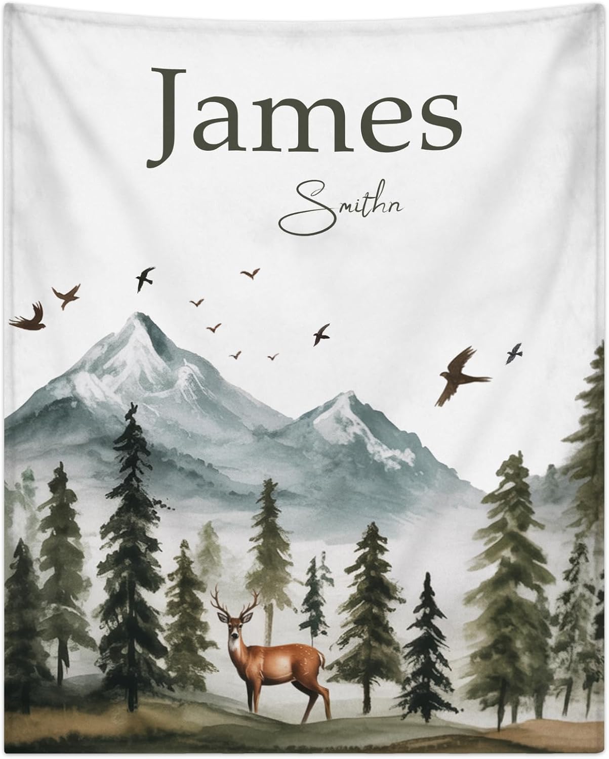 Personalized Baby Blankets for Girls | Custom Baby Blanket with Name for Kids | Woodland Animals-f